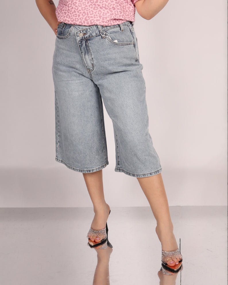 Bermuda in denim dal design moderno e originale, perfetto per aggiungere un tocco di carattere ai look casual. Realizzato in tessuto denim resistente e confortevole, questo modello unisce praticità e stile in un unico capo.