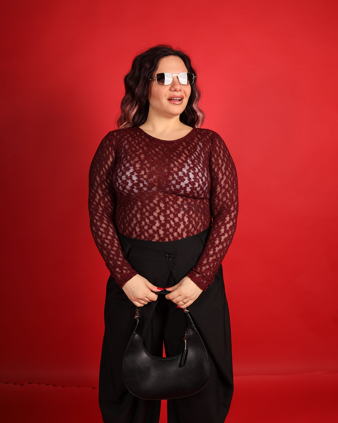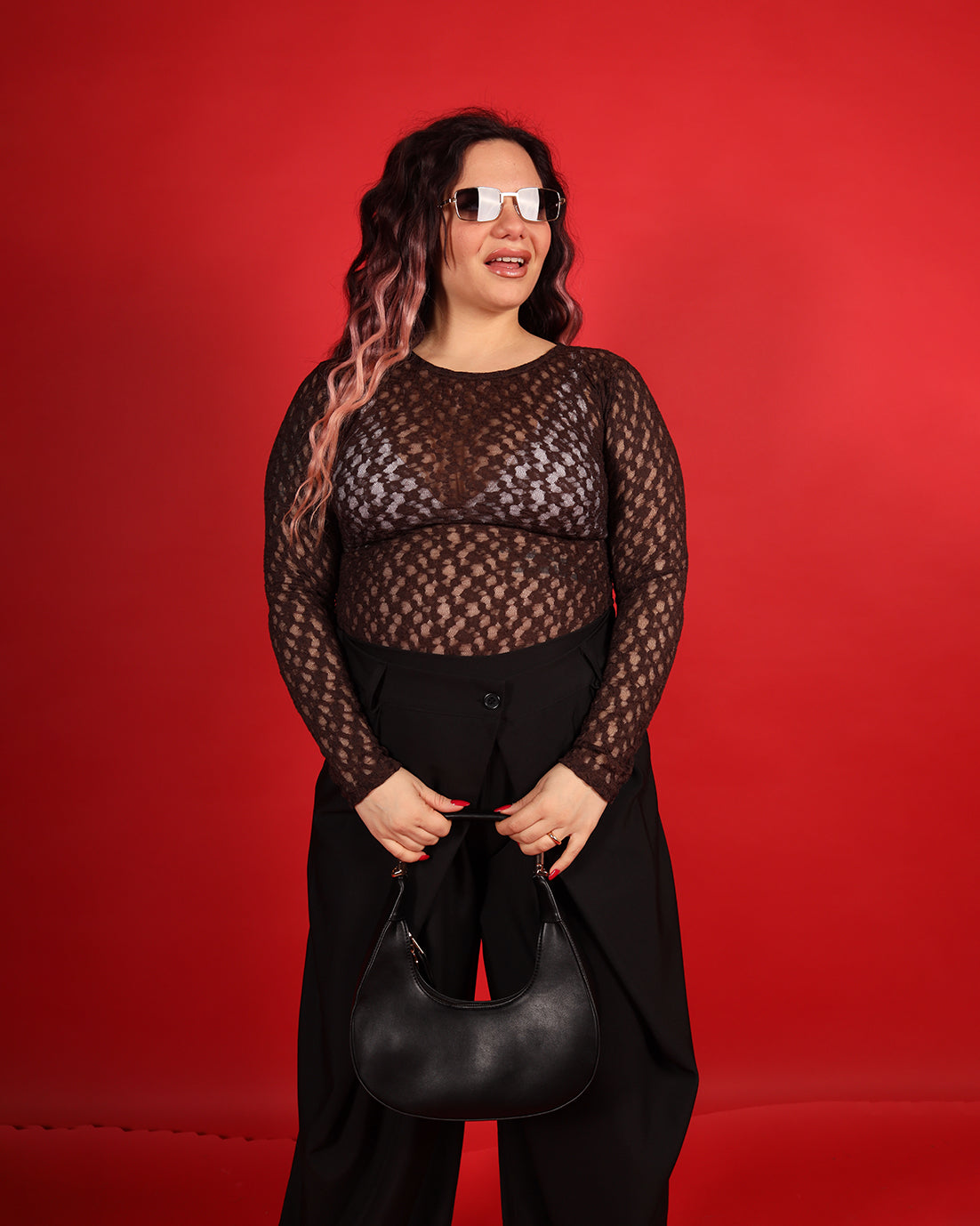 Sensuale e raffinato, questo body in pizzo è il capo perfetto per valorizzare la femminilità con eleganza. Realizzato in pizzo lavorato e trasparente, dona un effetto delicato e sofisticato, ideale per look da sera o outfit ricercati.
