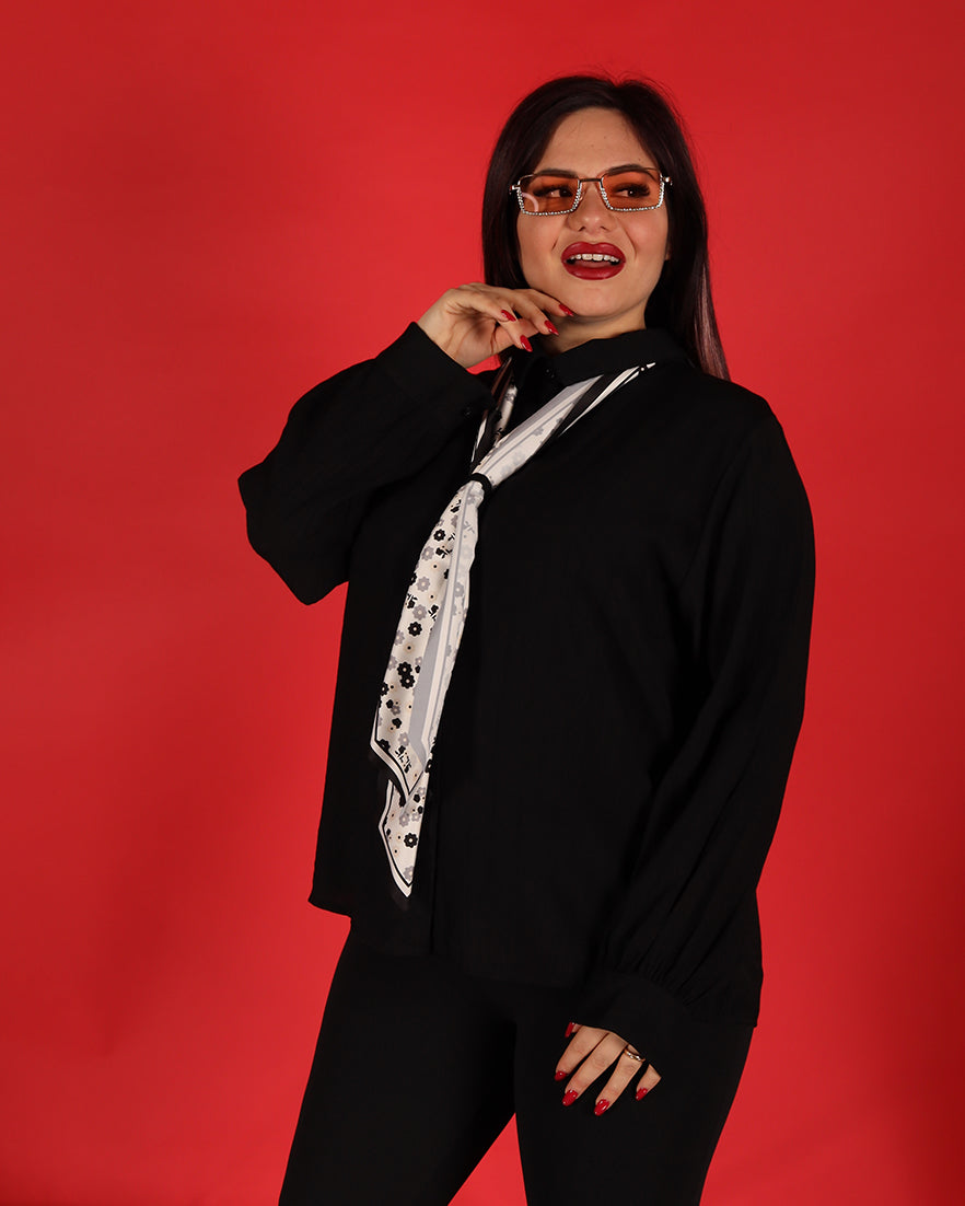 Raffinata e femminile, questa camicia è il capo perfetto per chi ama i dettagli che fanno la differenza. Realizzata in tessuto leggero e fluido, avvolge la silhouette con naturalezza ed è impreziosita da una cravatta coordinata con stampa floreale, che dona un tocco romantico e chic al look.