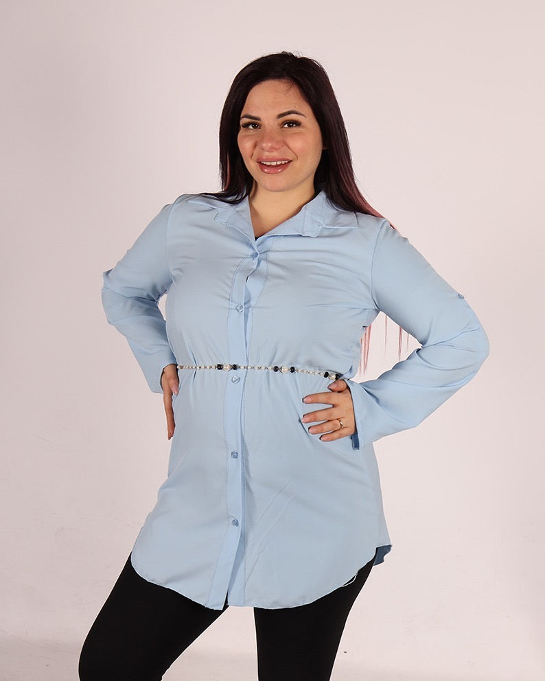 Camicia da donna a taglio lungo dal design raffinato, pensata per valorizzare la silhouette con un tocco prezioso. Realizzata in tessuto fluido e leggero, scivola delicatamente sul corpo garantendo comfort e vestibilità impeccabile.