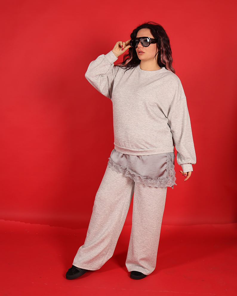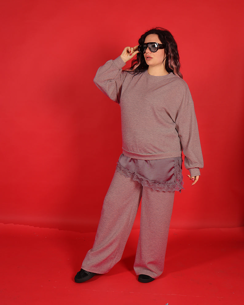 Un coordinato dal fascino delicato e femminile, perfetto per chi ama unire comodità e stile. Realizzato in morbido tessuto felpato, è ideale per accompagnarti nelle giornate quotidiane con un tocco raffinato.