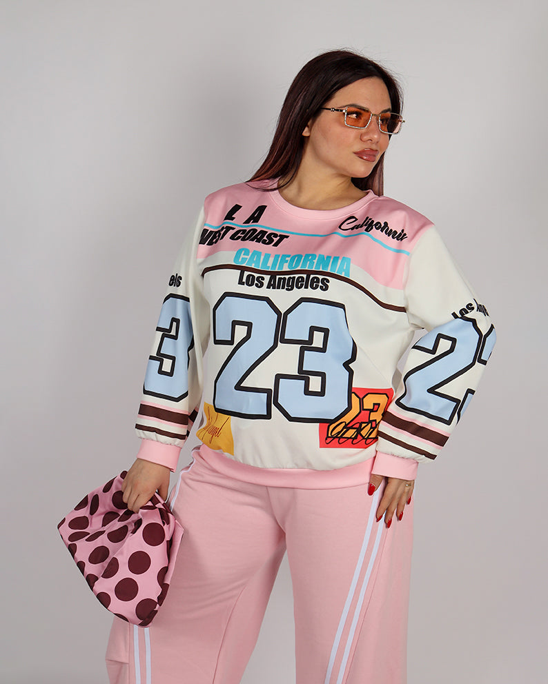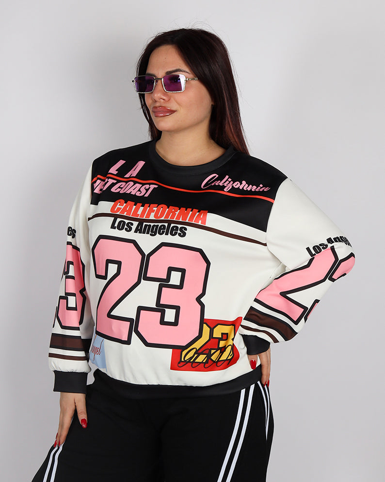 Felpa dal carattere urban e contemporaneo, ispirata allo stile street americano. Il design è impreziosito da maxi stampa frontale e sulle maniche con scritte e numerazione effetto college, per un look grintoso e di tendenza.