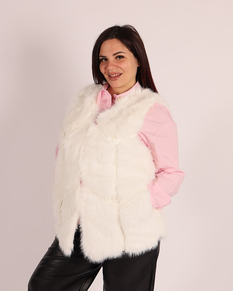 Sofisticato, luminoso e incredibilmente avvolgente, il gilet “Pelliccia Chic” è il capo ideale per impreziosire ogni outfit con un tocco glamour ed elegante.