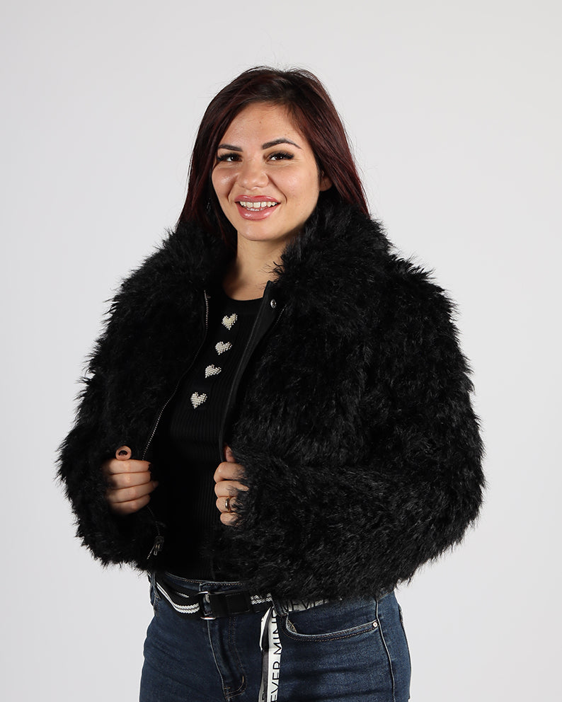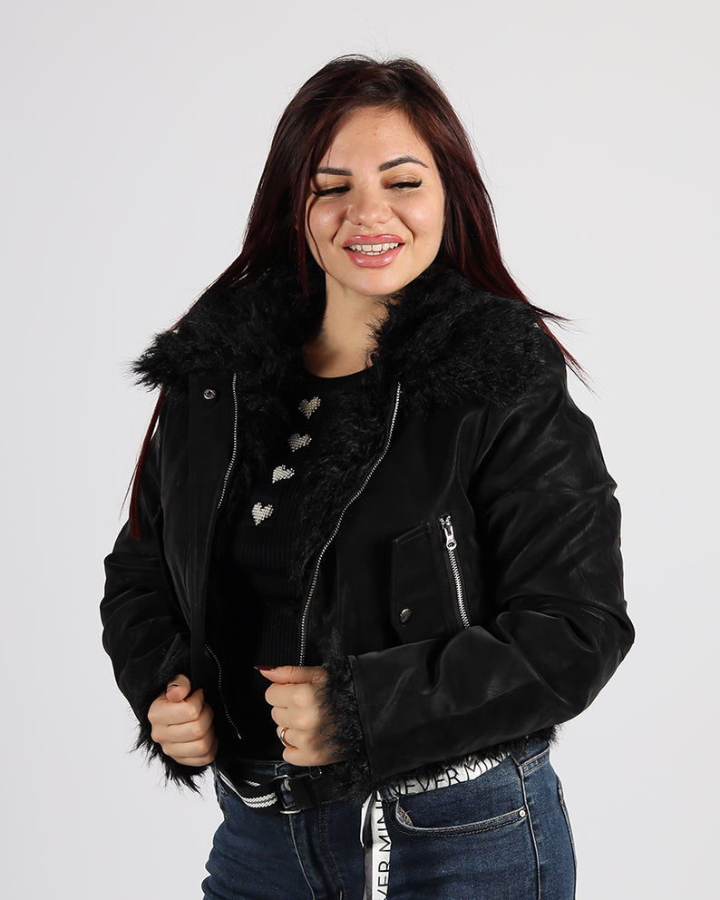GIUBBINO DOUBLE FACE CON INTERNO IN PELLICCIA ED ESTERNO IN ECOPELLE IMPERMEABILE, VESTE A TAGLIE S/M ED M/L