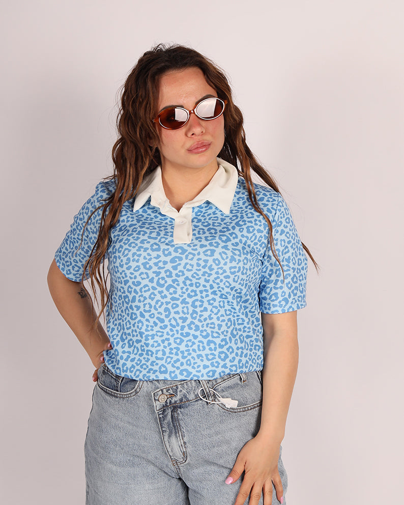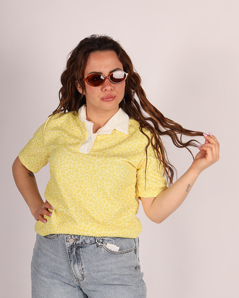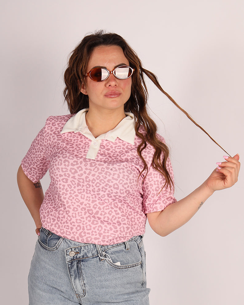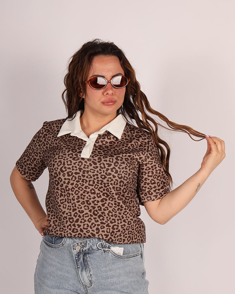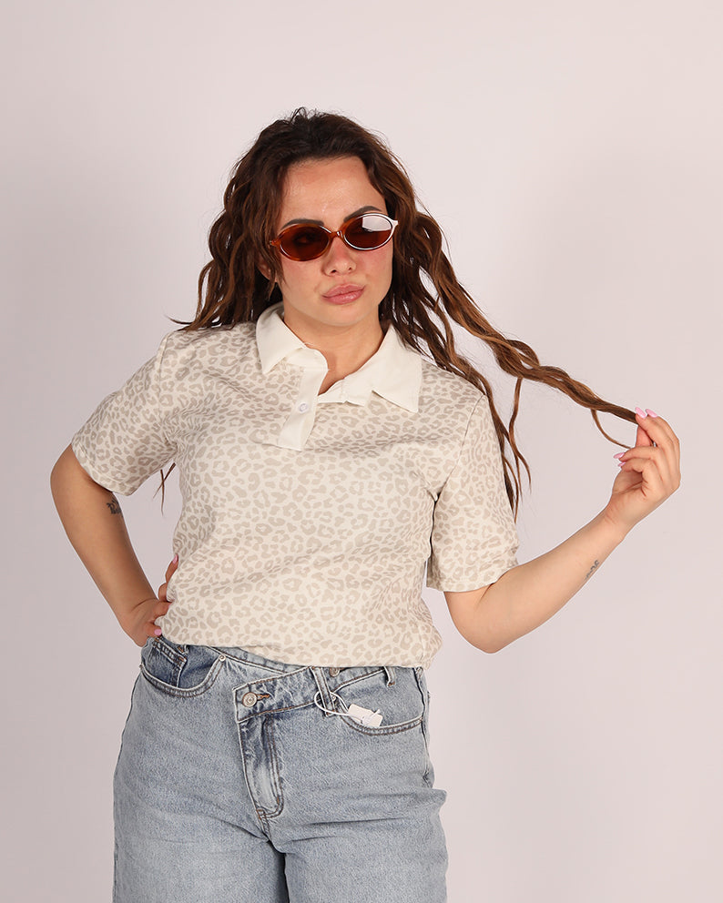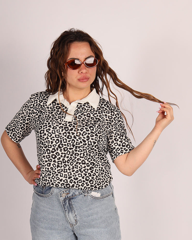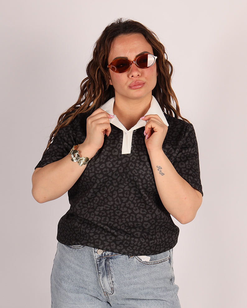 Realizzata in tessuto morbido ed elasticizzato, questa polo presenta una vestibilitĂ comoda che valorizza senza stringere. La stampa animalier dona personalitĂ al look, mentre il colletto a contrasto aggiunge un tocco raffinato e moderno.