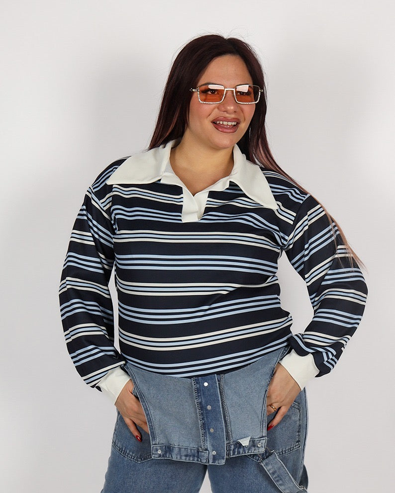 Polo dal design elegante e versatile, caratterizzata da fantasia a righe e collo a polo con revers che dona struttura e raffinatezza al capo. Il modello presenta una vestibilità morbida, ideale per garantire comfort e libertà di movimento durante tutta la giornata.